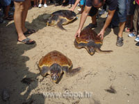 Tri jedinke glavate želve puštene natrag u more!!